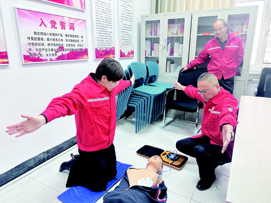 为普及健康知识和医疗器械操作方法,近日,胜利油田东胜公司人力资源服务中心采取“视频演示+专业指导+实践操作”模式,组织员工开展心肺复苏术和AED使用培训,进一步增强员工面对突发事件的应急处置能力,