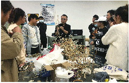 刘志江正在教学生们扎制风筝。 受访者供图