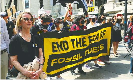 4月19日,纽约民众走上街头,抗议现政府大规模裁员、加征关税、驱逐移民等政策。 新华社发