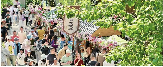 春花市集成了护城河畔的亮丽风景线。