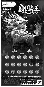 龙腾四海、凤舞九天、麒麟踏山川。龙、凤、麒麟在中华传统文化历史中被视为瑞兽,具有好运、吉祥等美好寓意,常被人视为祥瑞的象征。体彩顶呱刮围绕龙、凤推出的50元“中国龙”和30元“火凤凰”两款图腾文化主题即开票,上市以来广受购彩者喜爱,成为销售经典。近期,体彩顶呱刮围绕瑞兽麒麟推出20元“麒麟王”主题即开票,聚齐瑞兽,为大家呈祥献瑞!