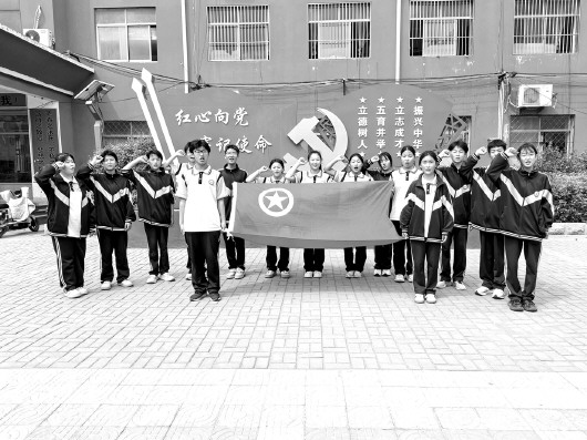 为增强团员青年的光荣感和使命感,激发爱党爱国热情,杨庄集镇初级中学团委组织全体团员开展了“我和团旗合个影”主题团日活动。通过创意合影、重温入团誓词、党建教育等环节,引导团员青年坚定理想信念,展现青春风采。活动中,团员们以团旗为背景,分组设计创意造型。团员们摆出不同的队形,象征团员青年心向祖国,模仿“五四青年”经典姿势,传承红色精神。鲜艳的团旗与青春的笑脸交相辉映,展现了新时代团员昂扬向上的精神风貌。