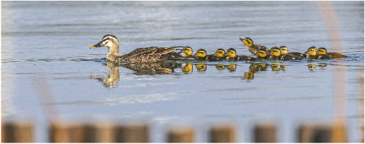▲大明湖斑嘴鸭宝宝萌态初现。 张清 摄