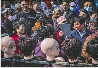 ◥庙会上“发”展新客户。 俞军 摄