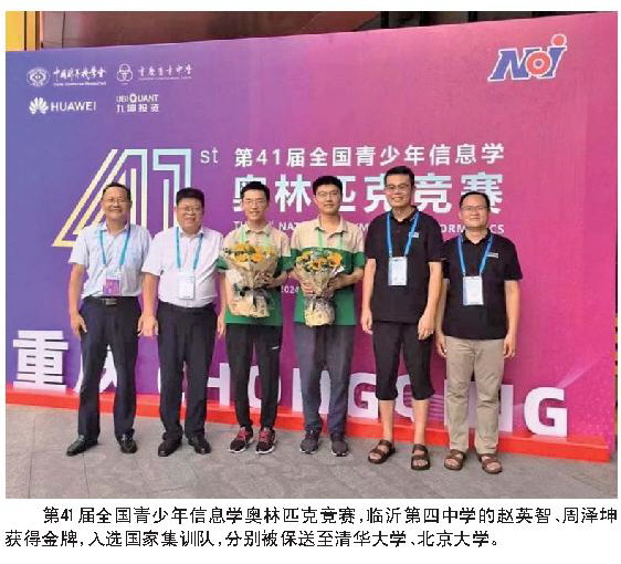 第41届全国青少年信息学奥林匹克竞赛,临沂第四中学的赵英智、周泽坤获得金牌,入选国家集训队,分别被保送至清华大学、北京大学。