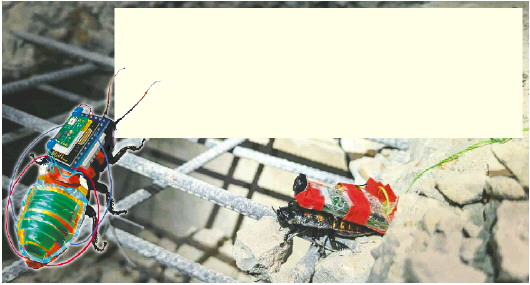 2022年,日本一家研究所将电子设备植入真正的蟑螂体内,使其成为能够远程操控的半机械蟑螂。研究人员将4微米厚的超薄太阳能电池板贴于蟑螂腹部,既能实现远程充电续航,也不影响蟑螂的灵活性。由于半机械蟑螂拥有在辐射条件下存活的极强生命力,因此可在极端环境下作业,完成人力难以胜任的搜救工作。
