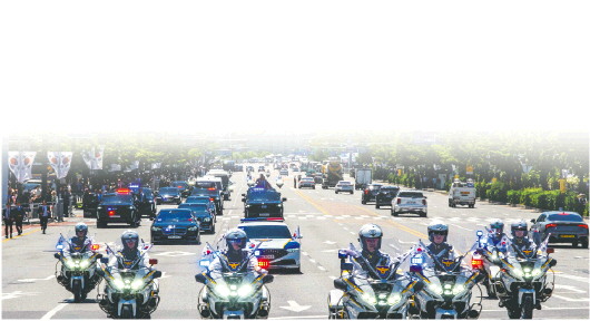 6月4日,在韩国首尔,载有韩国总统李在明的车队在宣誓就职仪式结束后前往总统府。 新华/法新