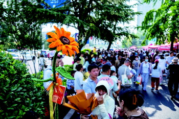 “旗袍是‘旗开得胜’,向日葵是‘一举夺魁’,都是好兆头!”邵钰雯妈妈笑着说。为了准时将这份沉甸甸的祝福送达,她和女儿7点10分就从太白湖新区家中启程。当巨型葵花在考场外粲然绽放,瞬间成为焦点。不少考生和家长纷纷举起手机记录这特别的画面,有人赞叹:“这哪里是花,分明是把‘加油’具象化了!”