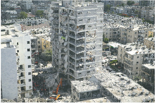 6月15日在以色列中部巴特亚姆市拍摄的在导弹袭击中被毁的建筑。 新华社发