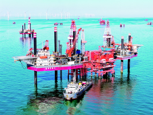 一直以来,胜利油田海上油区把保护海洋环境作为“一字号”工程来抓,持续将绿色发展贯穿于生产、经营、生活全过程,用行动践行“不让一滴油入海”的承诺,全力打造绿色海上油区。图为渤海湾畔,胜利海上油区生产一派繁忙,与碧海蓝天勾勒出一幅美丽生态画卷。