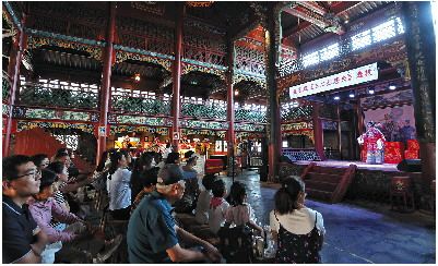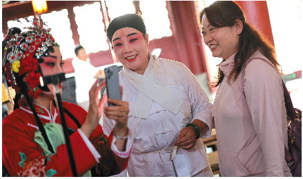 经常在表演结束后,有游客主动上前问候:“辛苦了!”他们还好奇地询问五音戏的历史,马乃转都一一耐心解答。她说:“在古城演出,就是为了让更多人了解五音戏,更好地传承和发扬这一传统艺术。”