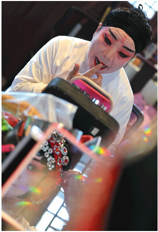 浓墨重彩的妆容步骤繁琐,女扮男装要两个小时。