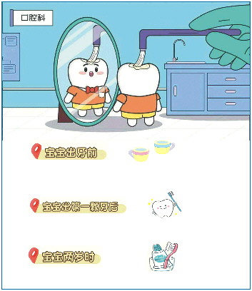 0-1岁:第一颗乳牙萌出后,每次喂奶后用纱布擦拭牙床,避免含奶入睡。