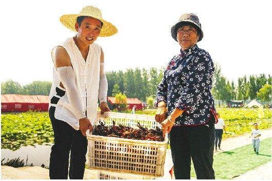 “‘藕虾共生’最大的好处是接近于原生态的水域环境,不仅能有效利用水面,而且称得上一举两得。”微山利民现代渔业科技有限公司总经理董平介绍,在“藕虾共生”生态养殖模式下,小龙虾既能为莲藕提供底肥,又能增强莲藕底泥的透气性,增加莲藕产量;莲藕和水草也能为小龙虾净化水质,提供天然饵料。“这样藕田就成了虾的别墅,虾也成为藕田的管家!”董平幽默地打着比方。据他介绍,在这种养殖模式下,养殖的小龙虾富硒含量、虾青素指标比普通虾高出2-3倍。该模式亩均年产值达8000元-1万元,纯收益能达到6000-8000元,较传统养殖方式产值翻两番。