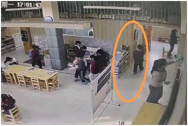 ◥热水桶装在孩子上厕所的必经之路上。 监控视频截图