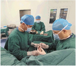图为王文德主任为患者做手术。