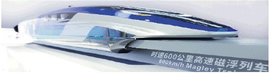 上图:第十五届国际交通技术与设备展览会上展示的时速600公里的高速磁浮列车模型。(新华)