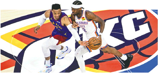 威斯布鲁克(左)很难与老东家雷霆队再续前缘,图为他与亚历山大在今年季后赛中对抗。资料片 Ic photo供图