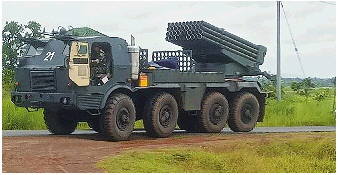 7月24日,一辆柬埔寨BM-21火箭炮发射车从柏威夏省柬泰边境返回。 新华/法新