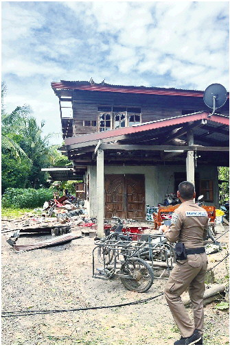 这张由泰国陆军发布的照片显示,两枚柬方炮弹击中泰国素林府一社区造成破坏。 新华/美联