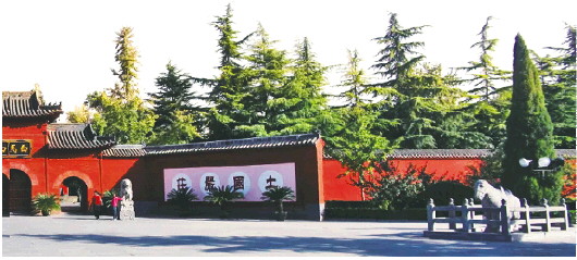 白马寺坐北朝南,走近大门就能看到高悬着的“白马寺”三个字,两侧的山墙上写着“庄严国土,利乐有情”八个大字,这其实是佛教宣扬比较多的概念。“庄严国土”是佛门大愿,是要让世间如西方极乐世界一样成为美妙清静的净土;“利乐有情”中的“有情”是说一切有生命有灵魂的生物,即众生,“利乐”即利益、快乐,意思是要利益一切众生,让众生快乐。