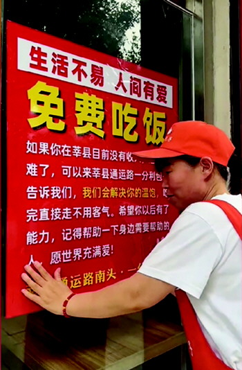 “如遇困难,免费吃饭”
