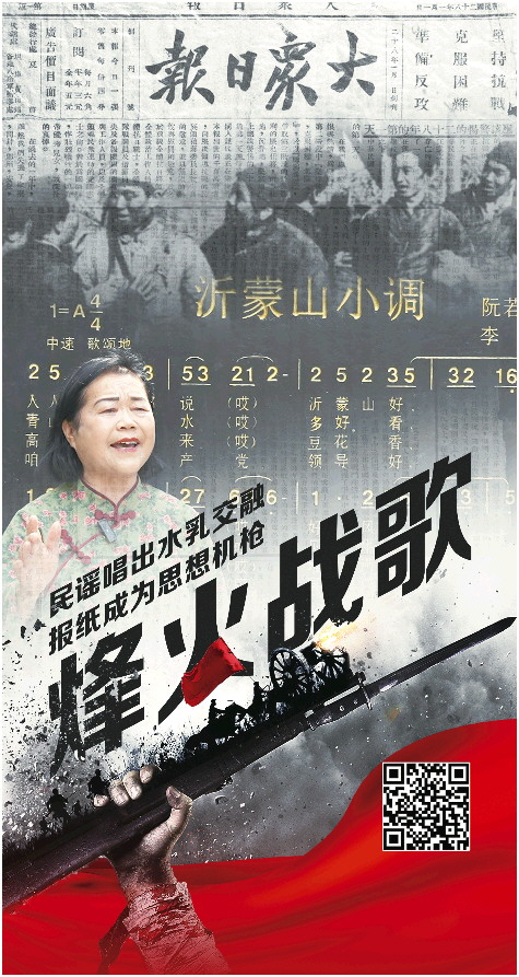 战场要守住,人心亦要守住。80多年前的齐鲁大地,抗日战争的硝烟裹着尘土翻涌,总有些身影,在炮火里挺直了腰:有人背着油印机往战壕里钻,把“前线捷报”的消息,一字一句地刻进纸张;有人在山坳里哼起刚写就的调子,“沂蒙山好风光”的旋律,成为坚韧的冲锋号;还有人站在断壁残垣上办起剧团,演员唱出激昂的曲调,号召“军民一心打豺狼”。