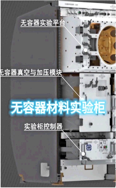 中国空间站天和核心舱内的无容器材料实验柜。 央视视频截图