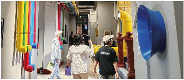 ◤游客们在蓬皮杜中心主题店山东首店内参观。