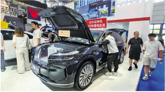 行走在本届车展场馆,技术展板取代了部分促销招牌,成为吸引目光的新焦点。智己展台悬挂的“智己天幕为盾,瞬感天幕防晒天花板”宣传语引来不少人问询,长城展台关于“Hi4混动智能四驱技术体系”的介绍也吸引众多消费者围观。