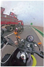 就这样,大货车在漫天黄沙中为四名摩友开辟出一条“安全通道”。直到20多分钟后,“车队”驶出横风区。