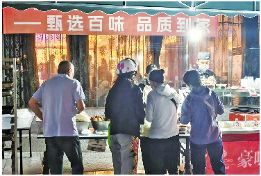 市民正在酒店的外摆摊位前选购食品。