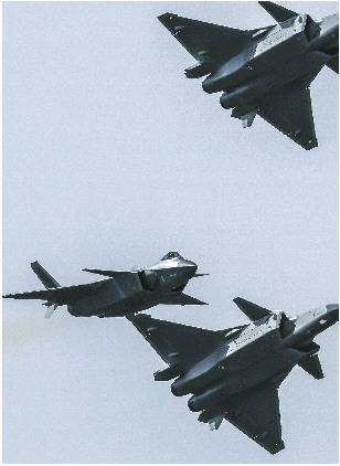 ◤多架歼20战机表演编队、对冲等特技动作,展现出优良的空中性能。