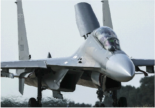 ◥降落滑行中的歼16双座重型多用途战斗机,给人满满的压迫感。