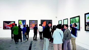 “油画展作品非常丰富,艺术家们运用不同的绘画技法,生动呈现了‘三孔’的建筑、景观与祭祀仪式等内容,画面全面且精美。”现场,已退休的吕宏伟与朋友们一同观展,漫步画作之间,流连忘返。他表示,《金声玉振》《龙腾千秋》等作品画面和谐通透、栩栩如生,我十分喜爱。”展览再现了“三孔”的经典场景,通过绘画打造出“可移动的三孔”,将“我们向三孔走去”转变为“三孔向我们走来”。吕宏伟补充说:“这些画作勾起了我对‘三孔’的回忆,也让我重新认识了这一文化圣地。近期我们几个老朋友计划再访‘三孔’,深入品味其文化内涵。”