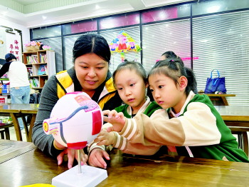 在街道“一老一小”服务中心,原来的党群服务中心被改造为老幼共用场所。一楼是老年活动空间,棋牌桌、书画室一应俱全;二楼则是孩子们的绘本屋和游戏区。午后时分,老人和孩子们一起做面点、上书画课,形成了“老小孩与小小孩共乐”的动人场景。