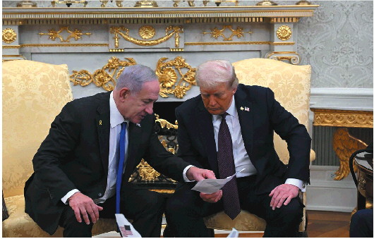 9月29日,美国总统特朗普(右)与到访的以色列总理内塔尼亚胡举行会谈。新华社发