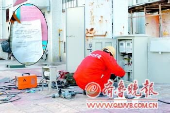 | 施工队的工作人员在更换电表。(大图) 本报记者 王健 摄