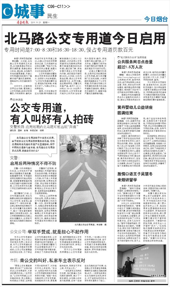 第A07版:2011年11月21日 星期一 编辑:张鹏飞 美编:雁爽 组版:庆芳