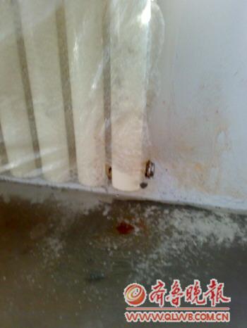| 11日,1602户成“水房”。(照片由马先生提供。) |  | 1602户暖气片的阀门锈掉。(照片由马先生提供。) |