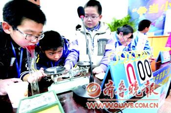 本报记者 曾现金 姬生辉 26日,济宁市第二届“争当小实验家”科学实验大赛决赛在济宁市运河实验小学举行,济宁市共有18支代表队参加,比赛题目活泼有趣,孩子们既考验了所学的知识,又经历了一次开心的比赛。但记者采访中发现,参赛代表队多来自济宁城区或县城的学校,却没有一所农村或乡镇小学的队伍参赛。济宁教育部门相关负责人表示,以后类似的活动中,将加大对农村中小学的宣传力度,吸引更多的农村学生参加。 □比赛活泼又有趣 26日上午8点半,济宁市第二届“争当小实验家”科学实验大赛决赛,在运河实验小学报告厅里举行。生物科目的决赛现场,济宁市东门小学、济宁市运河实验小学等6支代表队正在进行激烈角逐。 “冷藏食物时,冰块是放在食物的上面还是下面?为什么?”主持人问。“应该放在食物的上面,只有这样,冷空气在下降时才能将食物包围,起到冷藏的作用。”济宁市运河实验小学的一名女队员流利地回答。 而在之后进行抢答项目,才显示出了决赛的紧张气氛。这个环节中,曲阜市鲁城街道书院街小学代表队队员表现非常踊跃,抢答的次数最多,但也因两次提前抢答被扣掉20分。 记者发现,决赛中的问题不仅活泼有趣,又贴近生活,让孩子们将所学的知识与日常生活联系在一起。“什么是绿色食物?”、“怎样减少白色污染?”……抢答题环节中,题目内容还涉及到了一些当前的社会热点。“用哪类锅炒菜对人体有益?”、“酒后驾驶,酒精会麻痹驾驶员的哪些器官?”…… □城区学生成主角 记者在采访中了解到,18支代表队多来自济宁城区或县城的学校。济宁市教育局教学仪器供应站工作人员李峰介绍,预赛选拔过程中,有部分农村小学报名参赛,如任城区济东第一小学和济东第二小学、金乡县羊山镇中心小学等。后来这些队伍因成绩不理想而被淘汰。 鱼台县教育局教学仪器供应站教研员黄胜利认为,是动手实验的能力制约了农村学生。“从2007年至今年,鱼台县已投资800万元更新小学的科学仪器,全县60%的小学仪器配备达到要求。但是有的农村学校校舍面积有限,没有固定的科学实验教室,科学实验课也不固定,学生们的动手能力受到影响。” 与此相反,济宁城区的大多数小学每周都有固定的科学实验课。济宁市东门小学的冯国防是一名专职科学课教师,“学校3至5年级的学生每周有两节科学实验课,每周都能进实验室进行实验操作。”冯国防介绍,学校还引导学生制作星空图、观星箱等。本次决赛中,东门小学的两个代表队分别参加化学和生物科目的决赛。 教育部门:加大宣传力度,吸引更多农村学生 “这次比赛城区孩子唱了主角,这和学校是否注重培养动手能力分不开的。”济宁市教育局教学仪器供应站站长李华亮说,因为城区和县城学校师资力量与教学软硬件设施占有一定优势,城区学生的动手能力相对较强。 同时,李华亮也提到,本次决赛并没有农村学校的队伍参与。“2007年济宁市启动农村中小学教学仪器下乡工程,2010年底结束。济宁市筹资9100余万元完善基层中小学硬件设施,1047所农村中小学教学仪器更换一新。”李华亮说,目前,全市绝大部分农村中小学都配备上了全新的教学仪器,其中包括小学阶段的科学类仪器,中学阶段的物理、化学、生物等学科实验仪器,“农村学校在硬件设施上与城区中小学的差距越来越小。” “下一步,我们将加大宣传力度,让更多的农村中小学认识到加强动手能力和参赛意识的重要性,让孩子们掌握的知识在实际运用中得到更好的巩固。”李华亮说。