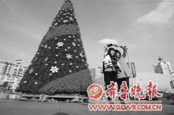25日,在澳门路上一家商场门前,20多米高的圣诞树已经布置完毕。据介绍,虽然距离圣诞节还有一个月,但不少商家都已开始布置专柜,装饰店面,营造圣诞气氛。 本报记者 杨宁 摄影报道