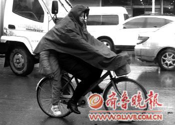作品描述:下雨了,母子穿着同一雨衣出行。 拍摄时间:11月29日 拍摄地点:淄博 作者:孙守利