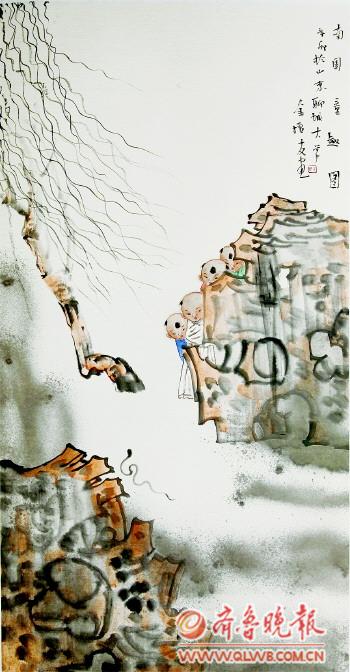 金增友 中国美术家协会会员,中国工笔画学会会员,被国家人事部授予“中国画杰出人才”称号,现为山东聊城大学美术学院教授。 ◥《南园童趣图》 金增友