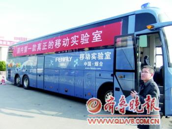 18日,一辆由本地厂家制造的移动实验室检测车在烟台正式亮相。这辆检测车与普通大巴车无异,但车内各种检测装备齐全,主要用于检测食品及环境质量。这辆移动检测车今年10月在北京首次亮相,当时吸引了很多企业和检测机构的关注。据介绍,检测车的价格根据检测仪器的配置不同,从几百万元到上千万元不等。 本报记者 秦雪丽 摄