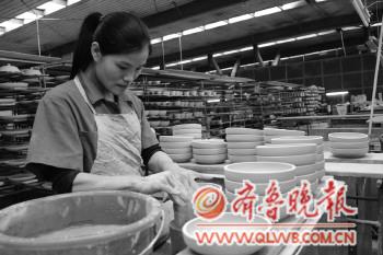| 珍贝瓷业工作人员在制作海瓷产品。 |