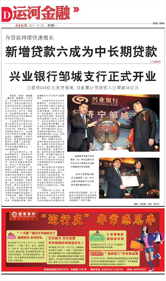 兴业银行邹城支行正式开业