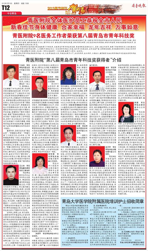 青医附院9名医务工作者荣获第八届青岛市青年科技奖