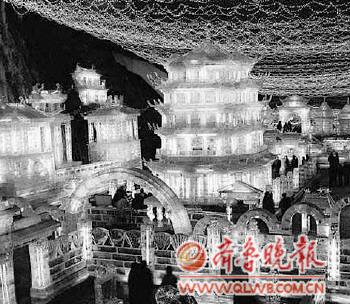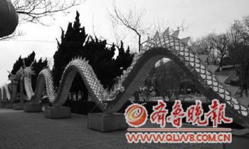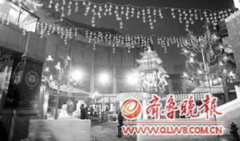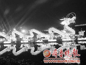 游览区推出花灯500余组,树灯300余棵,长城灯数千米和数万盏装饰灯,冰灯作品350余件,冰雕200件和60余件雪雕作品。 |  | 天津:“龙耀故里”新春万民赛灯会