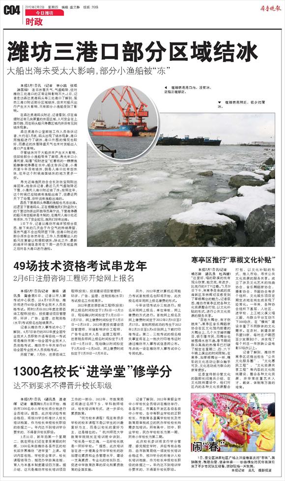 潍坊三港口部分区域结冰